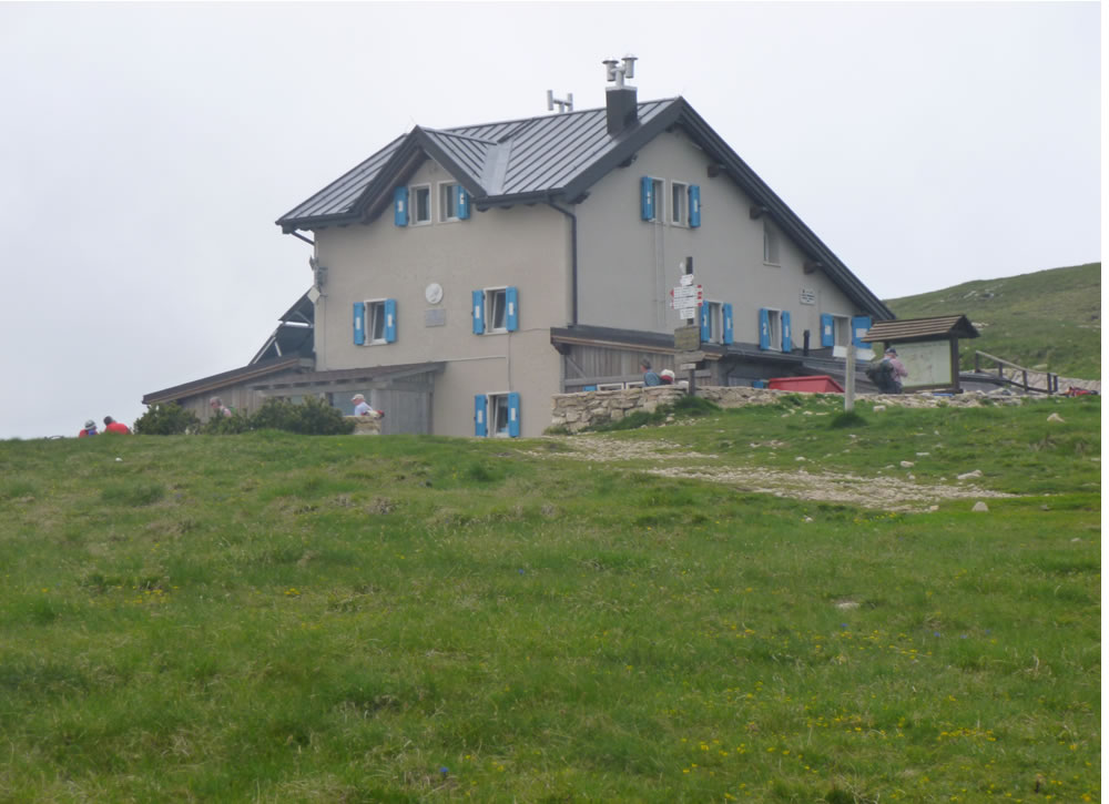 - Arriviamo così sul monte Altissimo di Nago (2.079), dove assieme ad un panorama stupendo, troviamo il punto di ristoro: Rifugio Damiano Chiesa. Nei pressi del rifugio ci sono diverse opere di guerra, la chiesetta e l’osservatorio. Dalla cima con il sentiero 601 inizieremo la discesa sul versante verso Nago-Torbole.